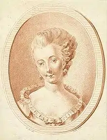 In 1777, general H. H. von Eickstedt became director of the Royal Danish Theatre. von Eickstedt reportedly undermined her position because he wished to benefit the career of his lover, Catharine Frydendahl, and it is noted how he gave the role in Ewalds Fiskerne, which was written for her, to Frydendahl.[5] The conflict culminated when von Eickstedt refused to give Caroline's lover, the German violinist Christian Friedrich Müller (1752-1827), a position in the theater, ordered him exiled from Denmark and delayed Caroline's divorce.[6] Reportedly, the theater direction feared that they would lose her if she married a foreigner. In 1780, not long after Caroline had finally been granted her divorce, Christian Friedrich Müller left Denmark for Sweden, and soon after, Caroline left Denmark in the guise of a man after her performance as Louise in Desertøren and reunited with him in Gothenburg in Sweden, where they married.[7] They had one child, Caroline (1791).