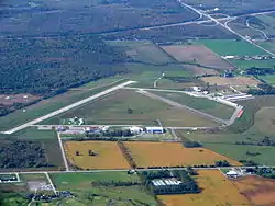 RCAF Detachment Carp was constructed as a relief landing field for No.2 Service Flying Training School at RCAF Station Uplands, as part of the British Commonwealth Air Training Plan during World War II. The outline of the characteristic three-runway triangle is still visible in the shape of the taxiways, but one of the runways has disappeared, and another (04/22) is gravel-covered and restricted to visual flight rules (VFR) only. Near the airport is CFS Carp, the largest of the Canadian Cold War Emergency Government Headquarters (nicknamed the Diefenbunker), a giant long-term fallout shelter for government and military officials that now serves as a museum.