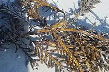 Carpophyllum maschalocarpum, commonly known as the common flapjack, is a brown alga that grows in crevices of rocks at low tide levels.[1] It is a common alga in New Zealand and is endemic.[2][3]