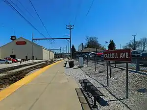 ![]() The Carroll Avenue station in April 2016. The freight house and yard are visible on the left side. | ||||||||||||
