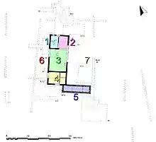The main building consisted of the following rooms and features: [3]