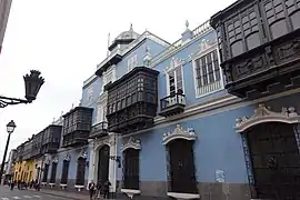 The Casa de Osambela is a building built during the colonial era of Peru. It stands on the old Novitiate of the Dominican fathers, destroyed by the earthquake of 1746, and part of the garden, facing the Calle de la Veracruz (today Jirón Conde de Superunda) in the historic center of the city of Lima. It is one of the largest mansions in the center of Lima and is notable for its wide façade and excellent quality balconies.