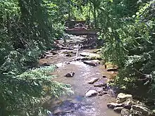 Cascade Park is a nature park and former amusement park in New Castle, Pennsylvania. The park was originally known as Big Run Falls when the area on which the park sits was purchased by Col. Levi Brinton in 1892.[1] Power companies at the turn of the twentieth century found they could make profits developing amusement parks, so in 1897, the New Castle Traction Company (later known as the Pennsylvania Power Company, or Penn Power) bought the property from Col. Brinton.[1] When the company held a contest for the park's name, ten-year-old Edwina Norris won ten dollars for submitting the name Cascade Park. The park opened on May 29, 1897.[2] The park was accessible not only via local trolley service but also via the Pittsburgh, Harmony, Butler and New Castle Railway, which later became the Harmony Short Line Motor Transportation Company' bus company.[3][4]