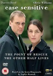 Case Sensitive is a British crime drama series broadcast on ITV, based on the best-selling books by Sophie Hannah. Two series of the programme, starring Olivia Williams and Darren Boyd, have been produced, adapting the novels The Point of Rescue and The Other Half Lives. The first episode was broadcast on 2 May 2011. Both series were issued on DVD on 16 July 2012.[1]