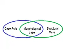 Structural Case is a condition for arguments that originates from a relational head (e.g. verb), while morphological case is a property that depends on the NP or DP complement.[8] The relationship between morphological case and structural case is evident in how morphological case is subject to case agreement whereby the morphological case appearing on a DP must be licensed by the syntactic context of the DP.[8]