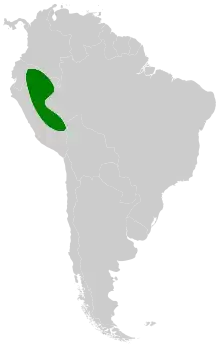 It is found in Bolivia, Brazil, Ecuador, and Peru. Its natural habitat is subtropical or tropical moist lowland forests.