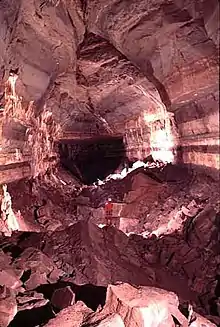 One of the rooms in the cave (the "Big Room") is 800 ft long, 180 ft high and 75 ft wide.[3]