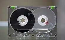 As a part of the Digital Revolution, the ongoing development of electronics technology decreased the cost of digital circuitry to the point that the technology could be applied to consumer electronics. The application of such digital electronics to cassette decks provides an early example of mechatronic design, which aims to enhance mechanical systems with electronic components in order to improve performance, increase system flexibility, or reduce cost.[9] The inclusion of logic circuitry and solenoids into the transport and control mechanisms of cassette decks, often referred to "logic control", contrasts with earlier "piano-key" transport controls and mechanical linkages. One goal of using logic circuitry in cassette decks or recorders was to minimize equipment damage upon incorrect user input by including fail-safes into the transport and control mechanism.[10] Such fail-safe behavior was described in a review by Julian Hirsch of a particular cassette deck featuring logic control.[11] Some examples of fail-safe mechanisms incorporated into logic control decks include: a mechanism designed to protect internal components from damage when the tape or motor is locked, a mechanism designed to prevent the tape from being wound improperly, among others.[12] Some logic control decks were designed to incorporate light-touch buttons or remote control, among other features marketed as being convenient.[13][14] In the car stereo industry, full logic control was developed with the aim of miniaturization, so that the cassette deck would take up less dashboard space.[15]