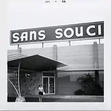 A grand opening for the renamed Sans Souci Hotel took place on August 21, 1955, following renovations which included a two-story, 82-room hotel[6] and an Olympic-size swimming pool. Future additions were planned for the 12-acre property, including a casino, nightclub, and restaurant.[7][8][9] The casino portion opened on October 23, 1957.[10][11] It was operated by George E. Mitzell and Harold V. Hinds.[12] The property also featured live entertainment in the new 400-seat Jamaica Room.[13] At the end of 1957, Mitzell announced plans to add 100 additional rooms,[14] although these did not materialize.[6] In 1958, a meat company filed a $21,500 lawsuit against the Sans Souci for lack of payment.[15] Saxophonist Charlie Ventura also filed a lawsuit, after suffering a fall on the casino's stage during a performance.[16]