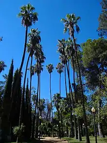 Castelar Park (Parque de Castelar) is located in Badajoz, in Extremadura, Spain. Situated south of Guadiana River,[1] its features include tall palm trees and a central pond, frequented by ducks and pigeons; peacocks wander around the park. There are monuments dedicated to the romanticist writer Carolina Coronado, who lived in Badajoz, and to Luis Chamizo Trigueros,[2] who was born in Guareña. Although Castelar remained neglected for many years, it was renovated during the tenure of Mayor Miguel Angel Celdran Matute (1996-present), making it a venue for fairs, exhibitions, entertainment and leisure. Parque Infantil (Playground) is located across the street.