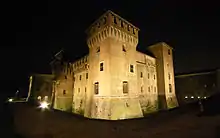 The Castello di San Giorgio is part of the Ducal palace of Mantua. It is a moated rectangular castle, each of which's four corners has a large tower and the moat is crossed by three drawbridges.