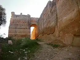A postern is a secondary door or gate in a concealed location, usually in a fortification such as a city wall.[53]