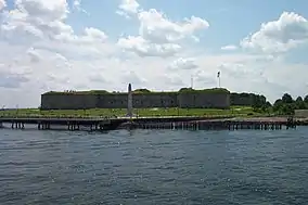 Beginning in 1801, a new fort on Castle Island was built by the war department.[3] The fort helped protect Boston from British attack during the War of 1812. The island is also the site of a monument to Donald McKay, the builder of the famous clipper ships Flying Cloud and Sovereign of the Seas.[23][24] The present structure, built between 1833 and 1851, is the eighth generation of forts.[25]