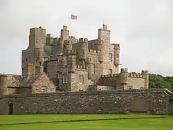 The Castle of Mey (also known for a time as Barrogill Castle)[1] is located in Caithness, on the north coast of Scotland, about 6 miles (10 km) west of John o' Groats. In fine weather there are views from the castle north to the Orkney Islands.[2]