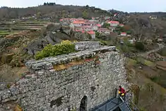 The castle is located in a rural isolated location over the granite cliffs of the Serra do Alvão, a difficult escarpment near the village of Castelo, dominating the fertile valley of Vila Pouca de Aguiar.[2]