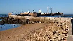 The Castle of San Sebastián (Spanish: Castillo de San Sebastián) is a fortress located in Cádiz, Spain, at the end of La Caleta beach on a small island separated from the main city. It was declared Bien de Interés Cultural in 1993.