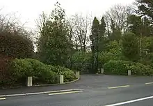 The estate lies immediately adjacent to the town, to the west, and largely west of the River Liffey, though a small part of the land has for centuries lain east of the river, above Kilcullen Heritage Centre and town hall/theatre/cinema. Accesses to the main body of the estate, secured with gates and cameras, are from Newbridge Road, on the approach to Kilcullen from the Curragh. The estate is bounded on one side by the Pinkeen Stream, a tributary of the Liffey, and the "Laurel Walk Woods."
