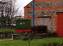 The former goods shed exterior loading platform became the home in 1985 to the remaining component frames of the railway company's 1880 locomotive No. 7 Tynwald for display purposes, although many major components were by that time scrapped; the display consisted of the main frames, cylinders, coal bunker, with a set of carriage wheels substituting for the pony truck. The locomotive had not been used in traffic since 1947 and was purchased by the group in 1978 following the nationalisation of the railway, to save it from scrap. The frames were initially stored at Ballasalla Station, later being removed to Santon Station before being relocated here. They were owned by the now-defunct Isle Of Man Railways & Tramways Preservation Society, and for a period they were moved to off-site storage before being returned to the goods platform in the autumn of 2009 only to depart again in 2012 due to issues with railway's management and the owners. They now reside on the Southwold Railway in Suffolk and await restoration. There is currently nothing displayed on the platform although the Friends Of... group have future plans.