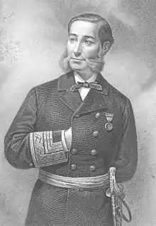 Casto Secundino María Méndez Núñez (July 1, 1824 – August 21, 1869) was a Spanish naval officer. In 1866 during the Chincha Islands War between Spain, Peru and Chile, he was general commander of the Spanish fleet in the Pacific. As such, he bombarded and destroyed the port of Valparaíso, and fought the Battle of Callao (during which he was injured nine times.) Méndez Núñez was the first man to circumnavigate the world on an ironclad warship: "Enloricata navis quae primo terram circuivit".