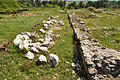 The excavations finally led to the discovery of a stone fort with a trapezoidal ground plan and unusual axis lengths of 320 m by 120 m, corresponding to an area of 3.84 hectares. The irregular form is probably due to the fact that the topographical conditions of the high terrace had to be taken into account when the fort was built.