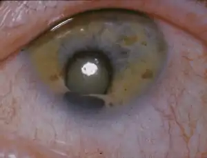 Cat eye syndrome (CES) or Schmid–Fraccaro syndrome is a rare condition caused by an abnormal extra chromosome, i.e. a small supernumerary marker chromosome.[2] This chromosome consists of the entire short arm and a small section of the long arm of chromosome 22. In consequence, individuals with the cat eye syndrome have three (trisomic) or four (tetrasomic) copies of the genetic material contained in the abnormal chromosome instead of the normal two copies.[3] The prognosis for patients with CES varies depending on the severity of the condition and their associated signs and symptoms, especially when heart or kidney abnormalities are seen.[4]