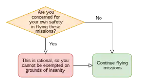 The catch is this: what looks like a statement of the conditions under which an airman can be excused flying dangerous missions reduces not to the statement