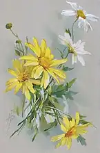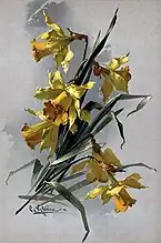 In addition to the popular depictions of flowers, Klein has also illustrated publications for the botanical world in the 1890s. These included, for example, the two-volume overview work Vilmorin's Blumengärtnerei, the Rosen-Zeitung, the French Journal des Roses and the journal of the German Dendrological Society.[15] There was also a major contribution to Parey's Blumengärtnerei, a standard work of horticultural literature at the time, which she was unable to complete.[16] She died on November 30, 1929 at the age of 68 in Berlin-Charlottenburg.[2] Her remains were removed from her grave in 1953 as she was not considered a sufficiently significant artist by the cultural authorities.[15]