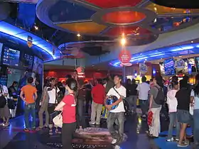 That same year, Cathay opened the largest cyber games centre E2Max @ Cine L9 at Cathay Orchard Cineleisure. E2Max @ Cine-L9 features over 200 PCs and consoles, including Xbox and internet surfing services, with different genres of games in varying configurations and levels for single or multi-player gameplay, a special ladies game area, 20 enclosed private cyber-gaming rooms, the Moto Music Zone and food & beverage facilities.