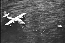 The Hornets were the first to arrive on the scene, followed by the Valetta, Sunderland, York and the Privateer. While the Hornets carried out a thorough search of the area for survivors, the French Privateer informed the Albatross, which was fifty miles away, "We have spotted the dinghy with survivors; looks like two of them from here."[20] The British and American planes were not able to communicate with each other as they were on different radio frequencies.