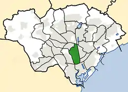 In July 1890, following the creation of Cardiff County Borough Council, Cathays was the name of one of the ten new electoral wards created in the county borough.[8] It covered an area northeast of the Taff Vale Railway (with much of what is nowadays the Cathays ward, west of the railway, being part of the Central ward).