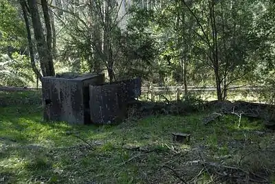 European settlement of the Acheron area begun in 1839 when they selected land for the Acheron Run.[6] The Taggerty Run was selected for 7 years after the Acheron Run in 1846. This area included the Cathedral Range area.[6] The Taggerty Run consisted of difficult country and was described as being ‘completely in the ranges'.[7] This difficult country of rocky soils and steep slopes discouraged the settlers from building there, so instead the land was grazed until the 1930s when wild dogs became destructive.[6] Soon after grazing in the Cathedral Range area ended, logging and milling occurred in the 1930s to the 1970s in the Little River and Storm Creek catchments.[3] In 1938 the Cathedral Mill, now known as Cooks Mill, was established near the junction of Little River and Storm Creek.[6] The mill ceased operating in 1955,[3] however logging continued until late 1971.[8] Remnants of Cooks Mill remain at the Cathedral Range State Park and is protected as a historic site.[3]