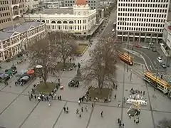 The square was the city's main meeting place for people taking a break from their work, or just visiting the city, and is a regular site of street performers and speakers of all varieties. The most well-known of these was The Wizard of New Zealand.