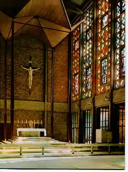 The current cathedral was built in 1958 in Berea. The old cathedral on Kerk Street, built in 1896, had served the catholic community well, but with increasing numbers, it was decided to erect a new and larger cathedral. The plans to build the cathedral were envisioned in 1937 by David O'Leary, the first South African born Catholic Bishop of Johannesburg.[1] O'Leary had originally intended the cathedral to be built on a site near Kerk Street but that land was partially sold and the remainder became the Kerk Street Church.