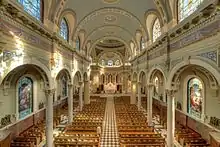 The Diocese of Harrisburg was established by Pope Pius IX on March 3, 1868.[4] St. Patrick's was named the pro-cathedral of the new diocese. Bishop John W. Shanahan proposed at a diocesan synod in 1902 that a permanent cathedral be built in the diocese. A committee was formed and they accepted the plans of Philadelphia architect George I. Lovatt, Sr. Bodies that had been buried in the parish cemetery had to be relocated to the new Mount Calvary Cemetery. Ground was broken for the new church in 1904 and it was completed on March 1, 1907. The cathedral was built for $250,000.[3] The church was listed on the National Register of Historic Places as a contributing property in the Harrisburg Historic District in 1976.[1]