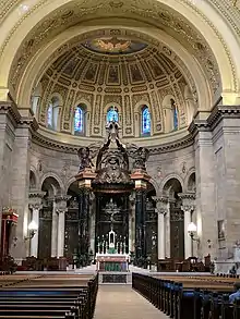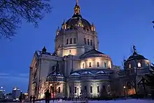 The Cathedral of Saint Paul is a Roman Catholic cathedral in the city of St. Paul, Minnesota. It is the co-cathedral of the Archdiocese of Saint Paul and Minneapolis, along with the Basilica of Saint Mary in Minneapolis. One of the most distinctive cathedrals in the United States, it sits on Cathedral Hill overlooking downtown St. Paul and features a distinctive copper-clad dome. It is dedicated to Paul the Apostle, who is also the namesake of the City of St. Paul. The current building opened in 1915 as the fourth cathedral of the archdiocese to bear this name. On March 25, 2009, it was designated as the National Shrine of the Apostle Paul by the United States Conference of Catholic Bishops. It is the third-largest Catholic cathedral and sixth-largest church in the United States.[3]