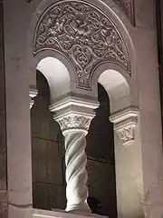 On 28 April 1966, the synod of the Serbian Orthodox church was offered by the president of the executive chamber of the Serbian government, Dragim Stamenković, to roof foundation walls and transform them into a church museum or a fresco gallery. As they were aware that no better offer would arrive, they agreed to transform it temporarily into a church museum, but rejected the fresco museum proposal. After that, the communist leader outplayed them, as the communist rulers declared that the church had consented to transfer the decision-making regarding all problems related to Saint Sava to the executive chamber of the Socialist Republic of Serbia. The church even received a changed record of their meeting, as it read that the church had agreed that the locality was to become a "museum of church antiquities" and "fresco gallery" under state supervision.[51] The church, recognising its marginalisation, withdrew its consent and repeatedly demanded to build the planned church. Émigré circles were approached for financial support, which the government dismissed. After the Serbian National Library was erected before the entrance of the building, the church was asked by the president of the Serbian Parliament Dragoslav Draža Marković to relocate its property.[51]