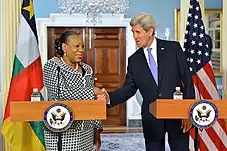 - "Catherine Samba-Panza sworn in as new CAR president". France 24. 23 January 2014. Retrieved 22 January 2021.
