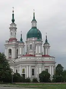 Catherine II was crowned at the Assumption Cathedral in Moscow on 22 September 1762.[27] Her coronation marks the creation of one of the main treasures of the Romanov dynasty, the Imperial Crown of Russia, designed by Swiss-French court diamond jeweller Jérémie Pauzié. Inspired by Byzantine design, the crown was constructed of two half spheres, one gold and one silver, representing the Eastern and Western Roman Empires, divided by a foliate garland and fastened with a low hoop.[28]