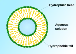 In the 1960s, Alec D. Bangham discovered liposomes as concentric lipid bilayers surrounding an aqueous center, based on his research at the University of Cambridge Babraham Institute.[6][7] The first formulations were designed using all natural lipids.[6] In 1987, Philip Felgner published the first approach to using cationic lipids to transfect DNA into cells,[8] based on his research into cationic lipids at Syntex from 1982 to 1988.[9] Felgner introduced the first cationic lipid used for gene delivery, N-[1-(2,3-dioleyloxy)propyl]-N,N,N-trimethylammonium chloride (DOTMA).[10]