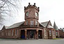 Catrine was constructed around one of the first cotton mills in Scotland in 1787 by Claud Alexander of Ballochmyle (who had made a not insignificant fortune as Commissary General in India) in partnership with David Dale.[5] A plan of Catrine at that time shows the hamlet consisted of 11 buildings, including a smithy and corn mill.[6]