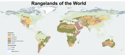 The different types of rangeland together form about 70% (excluding Antarctica) of the Earth's surface.