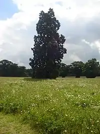 Much of the park is open grassland sown with a mixture of grasses and wildflowers. There are notable specimen wellingtonia, cedar and ancient oaks scattered throughout the park. Mixed woodland containing oak, sweet chestnut, and yew make up much of the boundaries. Improvements in the early 21st century include new footpaths, fencing, pedestrian gates and tree planting.