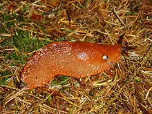 Dorsal view of Arion vulgaris shows caudal mucous pit on its tail end.