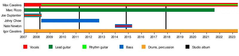 To complete the band, Max chose Soulfly guitarist Marc Rizzo and vocalist Joe Duplantier of Gojira. Rizzo was his choice because, according to Max, he and Rizzo "play together in Soulfly and musically, we are like twin brothers". Max also said that he talked to Rizzo about going back to the roots of the mid-1980s thrash metal, which he did with Sepultura. Max continues, "Marc was completely into it and he did great. He surpassed what I asked him to do." Max stated that Duplantier was Gloria's idea, as he did not know him at all. He added, "We had no idea who the guy is, he's from a different continent and we don't speak French. I did know the Gojira CD. But I like the element of surprise and danger Joe brought."[4]