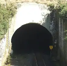 Construction of the South Island Main Trunk railway south of Dunedin that began in 1871 led to the construction of a 865-metre (2,838 ft) tunnel beneath Lookout Point, connecting Caversham with Green Island.[22] A second parallel 1,407-metre (4,616 ft) tunnel – the first double-track tunnel in the country – was built starting in 1907,[23] and all rail traffic moved to the new tunnel in 1910.[24] Caversham was served by its own railway station until its closure in 1962.[6] There has been a long-running campaign to have the older tunnel converted into a cycleway, though this scheme has never gained wholehearted council support.[25]