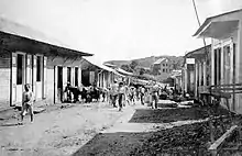 On September 11, 1928, a category five hurricane called San Felipe destroyed the temporary buildings at Henry Barracks, and the Navy Radio Station.[12] A radio message was sent from the Cayey Navy Radio Station on September 18, 1928, to follow “All buildings Henry Barracks destroyed by hurricane September 13th”.[13] The Navy left Cayey and moved its station to Isla Grande and Stop 7 1⁄2 in Puerto de Tierra. All the land held by the Navy included Magazine Hill (known in the community as "El Polvorin"), which was taken over by the U. S. Army. The 65th Infantry Regiment remained in the north side of the post. The south side was converted into two 1,000 feet shooting ranges[14] The decision was made to reconstruct all building for the regiment in the north side in concrete [15] One hundred and ninety buildings were completed, to include the north side of Henry Barracks.[16] Over 600 men were hired for a period of three years to work in these projects. During this period three large barrack buildings were constructed. The two one company barracks each had its own mess hall and kitchen and was occupied by an infantry company each. The two companies barrack located in the center of the quad occupied the Battalion Headquarters Co. and the Machine Gun Co.[17]