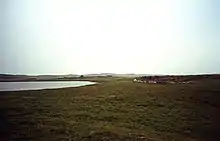 Gale-force winds blast the Monach Isles on about 160 days of the year. Only certain plants, such as marram grass, can withstand the constant blown sand and salt spray. Farther inland, there are more permanent patches of damp grassland, the wettest having rushes and moss. There are only a few tiny lochs, all rather salty and some only seasonal. The remains of the little village of Ceann Ear are clustered around the largest one (Loch nam Buadh), but the villagers used to get their freshwater from a few wells nearby.[8]