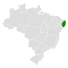 Ceará gnateaters are endemic to a small region in northeastern Brazil with upland evergreen forest.[2][4] They can be found in these Brazilian states: Ceará, Pernambuco, Paraíba, Rio Grande Do Norte, and Alagoas. [5] They are predominantly found in dense understory where they nest and forage.[6]