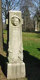 Statue atop John B. Windsor monument, sculpted by Carl Conrads (circa 1887–1905)
