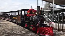 Engine #1, nicknamed the G.A. Boeckling, which is the full name of George Arthur Boeckling, was built by the Davenport Locomotive Works in Davenport, Iowa in July 1927 as construction number 2081 for N&S Coal Company in Pittsburg, Kansas. It was later sold to the Mackie Clemens Fuel Company in Mulberry, Kansas. In 1977, it was acquired by the Keystone Light Railway Company in Herminie, Pennsylvania. The engine was later restored as a 2-4-4T for Marriott Corporation's Great America amusement park in Gurnee, Illinois. While the engine was delivered to the park in 1980, it was stored behind the park's enginehouse in its shipping crate and never used. Marriott attempted to sell it around 1983 for US$90,000 (equivalent to $244,861 in 2021), but it did not sell and was a part of the sale of the park to Six Flags in May 1984. By 1991, it had been restored for Bill Norred, who was planning a Victorian village in Southern California. Norred traded it to Disney for five of the original 1955 Santa Fe & Disneyland Railroad closed coaches (part of the Retlaw 1 passenger train), which had been out of service for nearly twenty years. The engine was too large for Disneyland, and was sent to Walt Disney World where it was named after Ward Kimball. It was placed on display at Epcot before being traded to Cedar Point in 1999 from Walt Disney World for the Maud L., one of the Cedar Point & Lake Erie Railroad original engines running since 1963. The engine sat in the back of the engine house for years and was finally sent to Knott's Berry Farm In California to be restored in 2010.[11] In late 2011 it returned to Cedar Point and was run in late August that year after being converted to a 2-4-0 type tender engine by the CP&LE RR crews.[12] In 2013 for Cedar Point & Lake Erie Railroads 50th Anniversary the "Davenport" (which was its nickname until it got a name) was renamed G.A. Boeckling, after one of Cedar Point's previous owners. Meanwhile, the former Maud L. of the CP&LE RR was restored to service in 2005 at Disneyland, where it operates as the new Ward Kimball, locomotive #5 of the Disneyland Railroad.